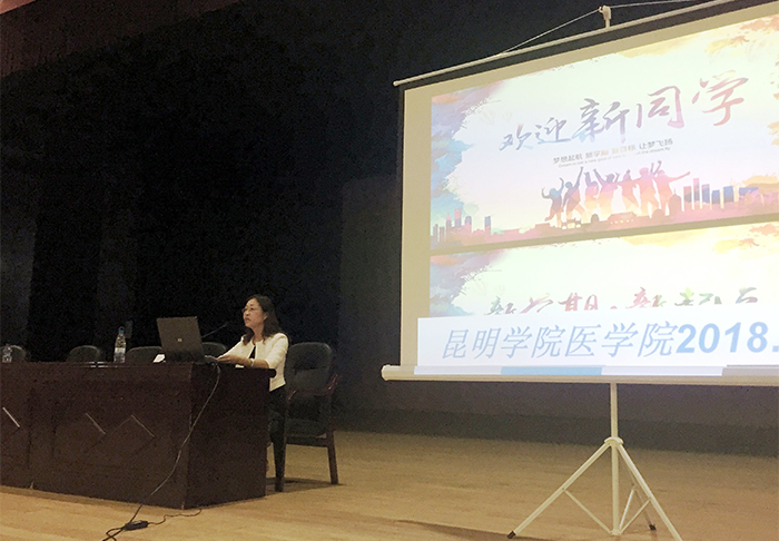 余珊院长以《献身医学,立志成才》为题,向2018级新同学介绍了开云kaiyun官方网站的基本情况、医学院的办学历史、师资队伍、科研状况、实践教学条件等。并结合“希波克拉底誓言”、“中国医学生誓词”及开云kaiyun官方网站“明德至善,知行利物”校训进行解读,向新同学提出希望:一是树立献身医学的崇高理想;二是学会做人;三是学会学习;四是历练自己健康的心理素质。