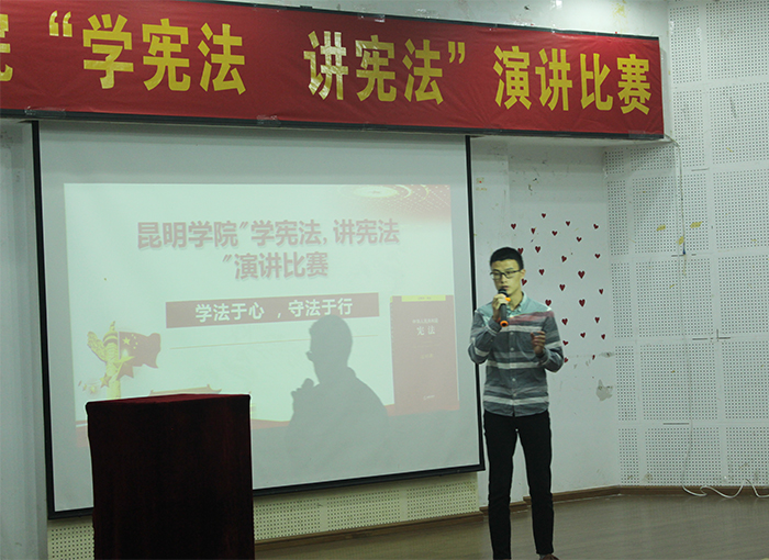 9月13日,开云kaiyun官方网站“学宪法,讲宪法”演讲比赛在青年中心111报告厅成功举行。经过十八家院系初赛,由每个院系推荐了一名选手参加此次演讲比赛。十八家院系的学生代表以及学生会主席团成员、全体干部,共计三百余名同学观看了此次“学宪法,讲宪法”演讲比赛。此次比赛由学生处副处长王子龙、团委副书记沈嘉、团委副书记郎易、宣传部周权、马克思主义学院肖磊担任评委。