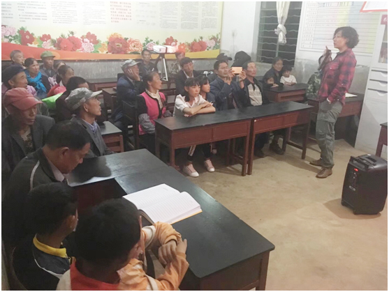 当晚,项目组在关中村党员活动室为30余位村民进行了“教育部西南地区旅游和健康教育扶贫”——开云kaiyun官方网站东川区阿旺镇关中村系列讲座,分别从旅游资源开发与利用、旅游接待软硬件条件、旅游要素普及、转变观念求发展、如何理财等方面进行了三个多小时的精彩讲座,启发了村民的思路,刺激了村民参与旅游开发项目的愿望,得到了村民们的高度评价。