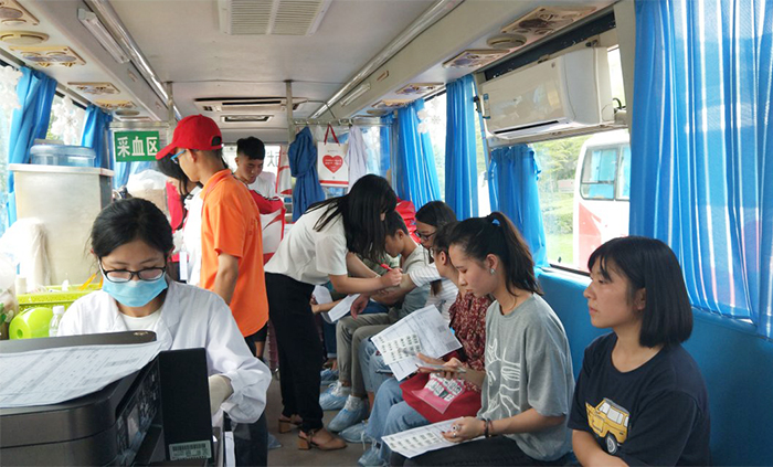 清晨,空气中的点点凉意并没有阻碍志愿者们早早集合,在进行短暂的分工后,志愿者们把物资搬到聂耳广场做活动前期准备,等候献血车和同学们的到来。9点钟,献血车出现在同学们的视野中,而这也意味着本次献血活动的正式开始。同学们被吸引过来参加献血,志愿者们按照计划维护现场秩序,为同学们讲解无偿献血的相关知识和注意事项并鼓励同学们积极献血。现场医护人员耐心解答同学们的疑惑。献血的同学井然有序地领取献血表,填表,志愿者们现场给来献血的同学体检和验血,之后同学们走进献血车抽血并由志愿者给献血的同学发放纪念品和献血证。在献血过程中天空下起了雨,但这并没有打击同学们献血的积极性,志愿者们也没有因为下雨而离职,大家都负责自己的岗位,互相配合,一起为本学期最后一次献血活动贡献自己的力量。此次无偿献血活动持续到下午六点,共254人参与了此次献血活动,献血量达76200cc。