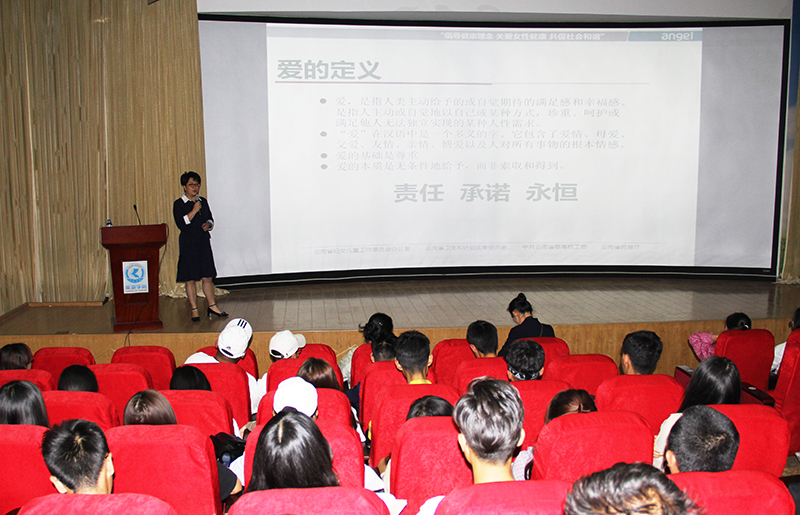 本次宣教活动由昆明中英安琪儿妇产医院妇科主任蔡琼主讲。蔡琼主任以“爱,不要伤害”为题,以案例的方式从爱情三要素为切入点,从大学生恋爱原因分析、大学生的性心理和性行为、恋爱与避孕、爱情路上意外怀孕怎么办、人工流产严重威胁女性生殖健康等方面进行了详细的讲解。