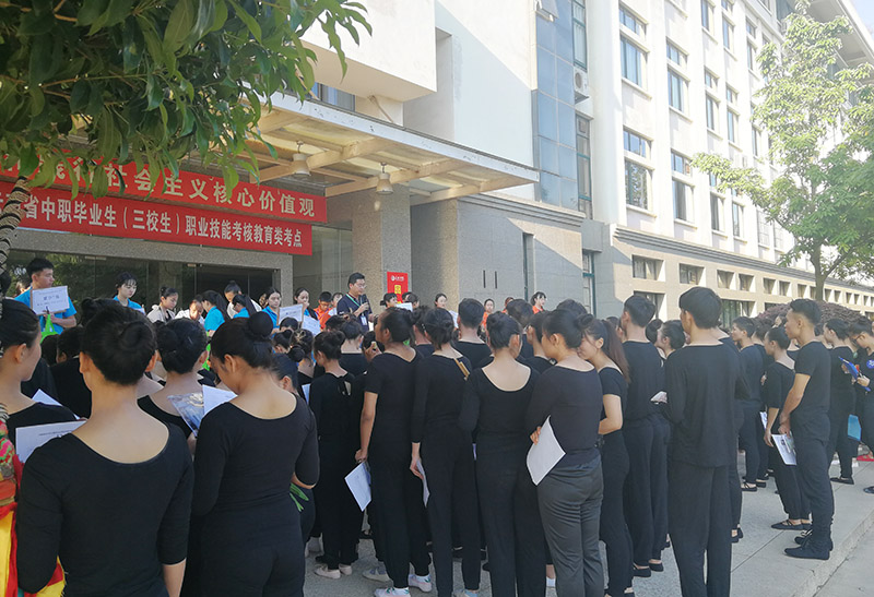 4月20日,2019年云南省中职毕业生教育类技能考核工作在惟行楼1栋完拉开序幕。本次考核要求高、任务重要,来自全省各地州市中职学校的2582名考生参加了本次教育类技能考试。技能考核共分职业认知与心理素质、言语技能、舞蹈技能、声乐技能、书写技能及简笔画技能等六大项。