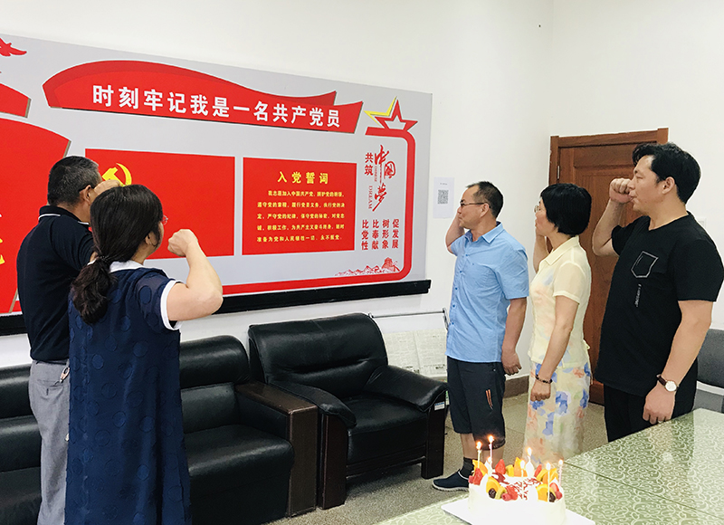 活动中,党支部书记对过政治生日9位党员表达了节日的祝福,并将一张张承载特殊意义的政治生日卡发放给过生日的党员。全体党员在支部书记的领学下集体学习了党章,提醒全体党员始终牢记自己是共产党员,要做到对党忠诚,不忘初心,以奋发有为的精神状态投身到学校的改革发展建设中去。随后,10年、2030年党龄党员一起面对党旗,重温入党誓词,在思想上再次接受洗礼,切实增强四个意识, 坚决做到两个维护,始终保持共产党员的政治本色。随后,过政治生日的党员结合自身实际发言,回顾成长历程和入党以来的切身感受,并一起分享生日蛋糕。
