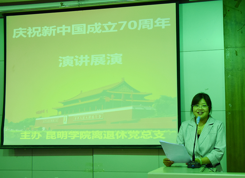 为深入学习贯彻习近平新时代中国特色社会主义思想和党的十九大精神,5月28日离退休党总支组织离退休教职工在昆师路老阶梯教室开展“庆祝中华人民共和国成立70周年”演讲活动,此次活动也是开云官网“银发聚力彩云南 助力昆明新发展”主题活动之一。