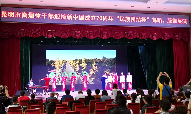 5月29日,由离退休党总支副书记付晏昆、副处长郑国彬带队,离退休教职工参赛队员及工作人员一行22人,参加了2019年“银霞聚力彩云南助理春城新发展”昆明市离退休干部迎接新中国成立70周年“民族团结杯”舞蹈、服饰展演。
