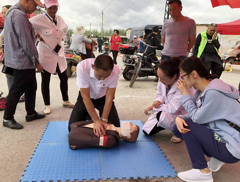 医学院师生党员走上街头,在小板桥集市开展专家义诊、健康咨询、卫生宣传服务等活动。为赶集群众做了身高、体重、血压、脉搏 4 项指标进行测量与评价,并对检查结果给出健康指导,且对于居民所患的一些日急慢性病,免费为其提供用药指导帮助。医学院副院长杨兆宇教授(主任医师)在现场义诊,为多名老年人及相关工作人员传授健康保健知识,给老人讲解日常生活中多发病、常见病及其防治,帮助老人们增强自我保健防病意识,
