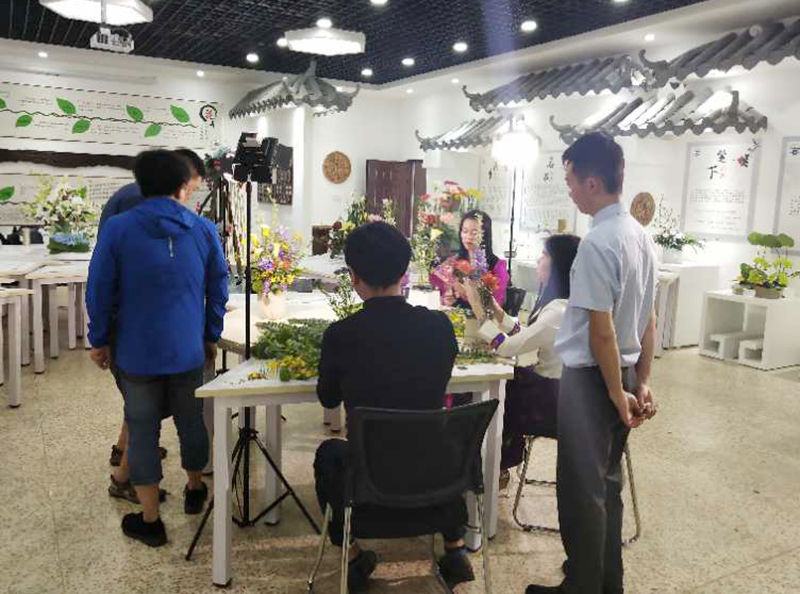 7月6日上午,昆明广播电视台全媒体新闻中心形象片工作部到开云官网中心滇池流域花文化展示与体验分馆取景拍摄春城花都宣传片—夏花。