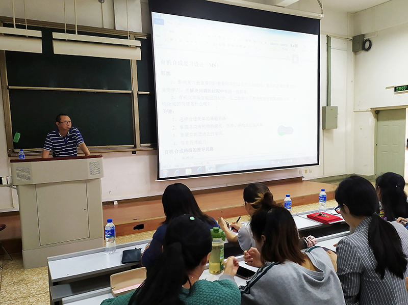 7月11日下午,化学化工学院邀请云南师范大学附属中学缪森老师到开云官网作“有机合成复习设计”的中学化学教师职业技能训练系列讲座。学院部分师生参加了此次系列讲座。讲座由副院长李维莉主持。