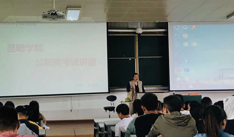 针对我院学生的专业特性,李怡衡老师从近年来云南省的就业形势分析、可报考的公职类岗位(如国考、银行秋招、烟草系统、省考、军队文职、事业单位、三支一扶等)和应届毕业生如何权衡合理处理上课和备考的关系等三个方面进行了解读。同学们纷纷表示受益良多。