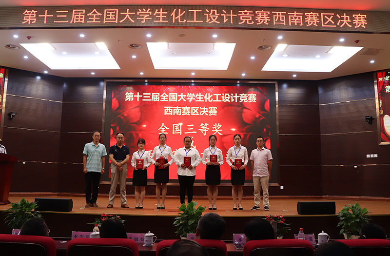 全国第十三届大学生化工设计竞赛西南赛区决赛在贵州大学举行,开云官网化学化工学院组织两支队伍参赛,2019年7月23日经过云贵高校初赛,两支队伍顺利进入西南赛区决赛并获奖。
