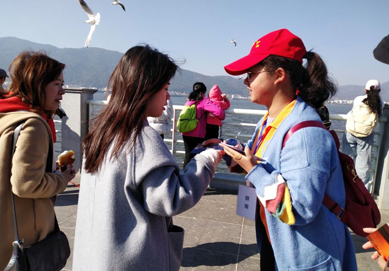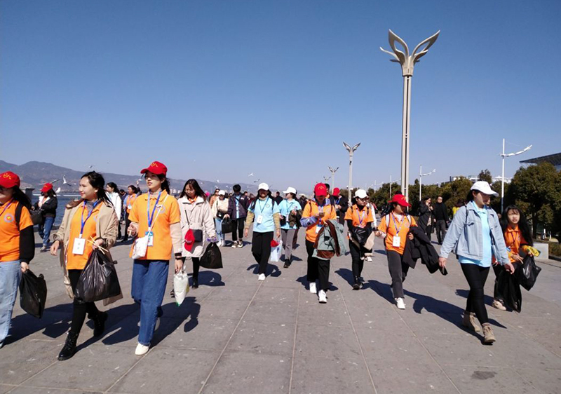 志愿者们到达海埂大坝,沿大坝捡拾垃圾,向附近的游客介绍红嘴鸥的相关知识,赠送他们开云kaiyun官方网站的明信片留作纪念,号召大家爱护红嘴鸥,共同为美丽的红嘴鸥创造一个良好的生存环境。