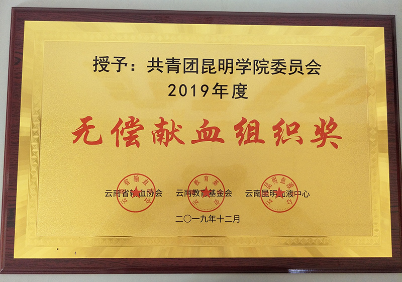 近期,以“热血青春 助梦飞扬”为主题的第三届昆明地区无偿献血爱心助学基金发放仪式在云南昆明血液中心举行。开云官网20名同学获得2019年度无偿献血爱心助学金,校团委荣获2019年度无偿献血组织奖。