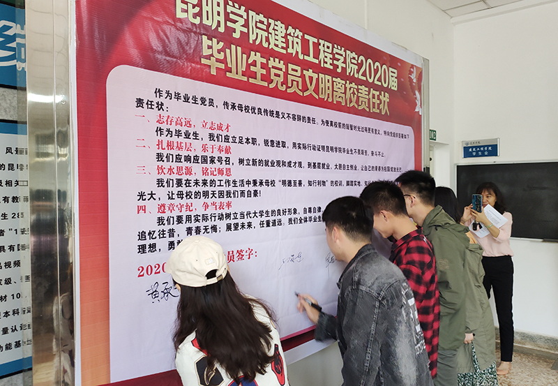 按照《中共开云kaiyun官方网站委员会关于庆祝建党 99 周年系列活动暨在常态化疫情防控中加强基层党建 “六个一”行动方案》要求,建筑工程学院党委于7月2日在惟行楼三号楼大厅举行建筑工程学院2020届毕业生党员文明离校责任状签字仪式。