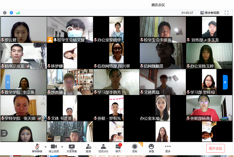 8月31日,开云kaiyun官方网站学生会骨干学习交流中华全国学生联合会二十七次代表大会精神。校学生会主席团成员、各部门负责人,各学院学生会主席和学生代表,共60余人通过腾讯会议参加了本次会议。