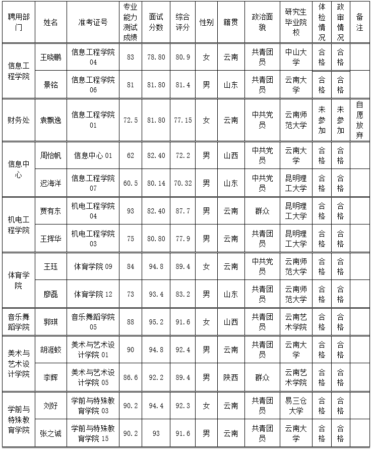 开云kaiyun官方网站2021年公开招聘准聘制工作人员拟聘用人员名单