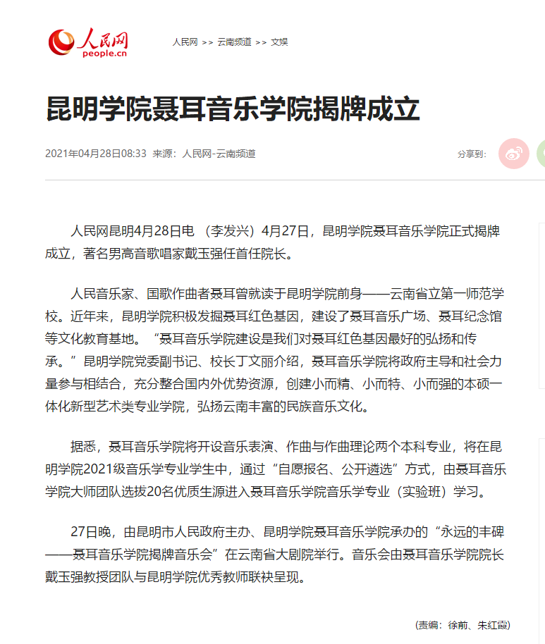 开云kaiyun官方网站聂耳音乐学院揭牌成立