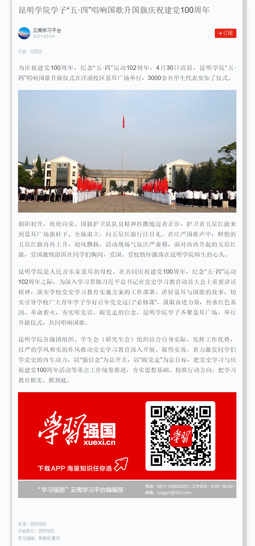 开云kaiyun官方网站学子“五·四”唱响国歌升国旗庆祝建党100周年