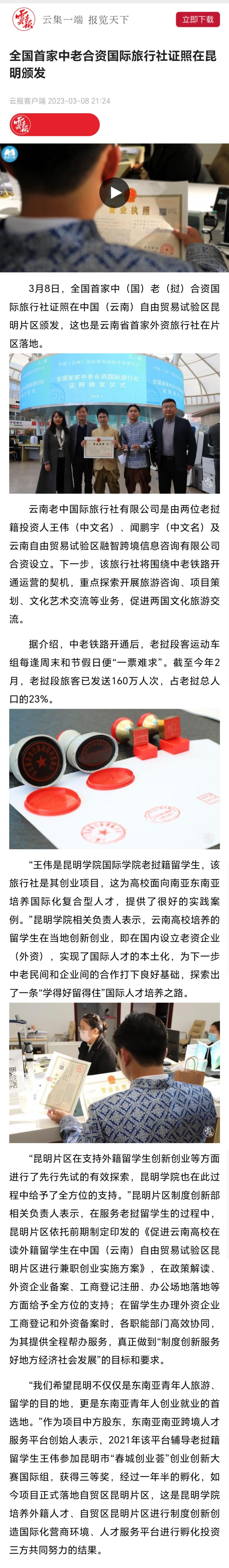 全国首家中老合资国际旅行社证照在昆明颁发