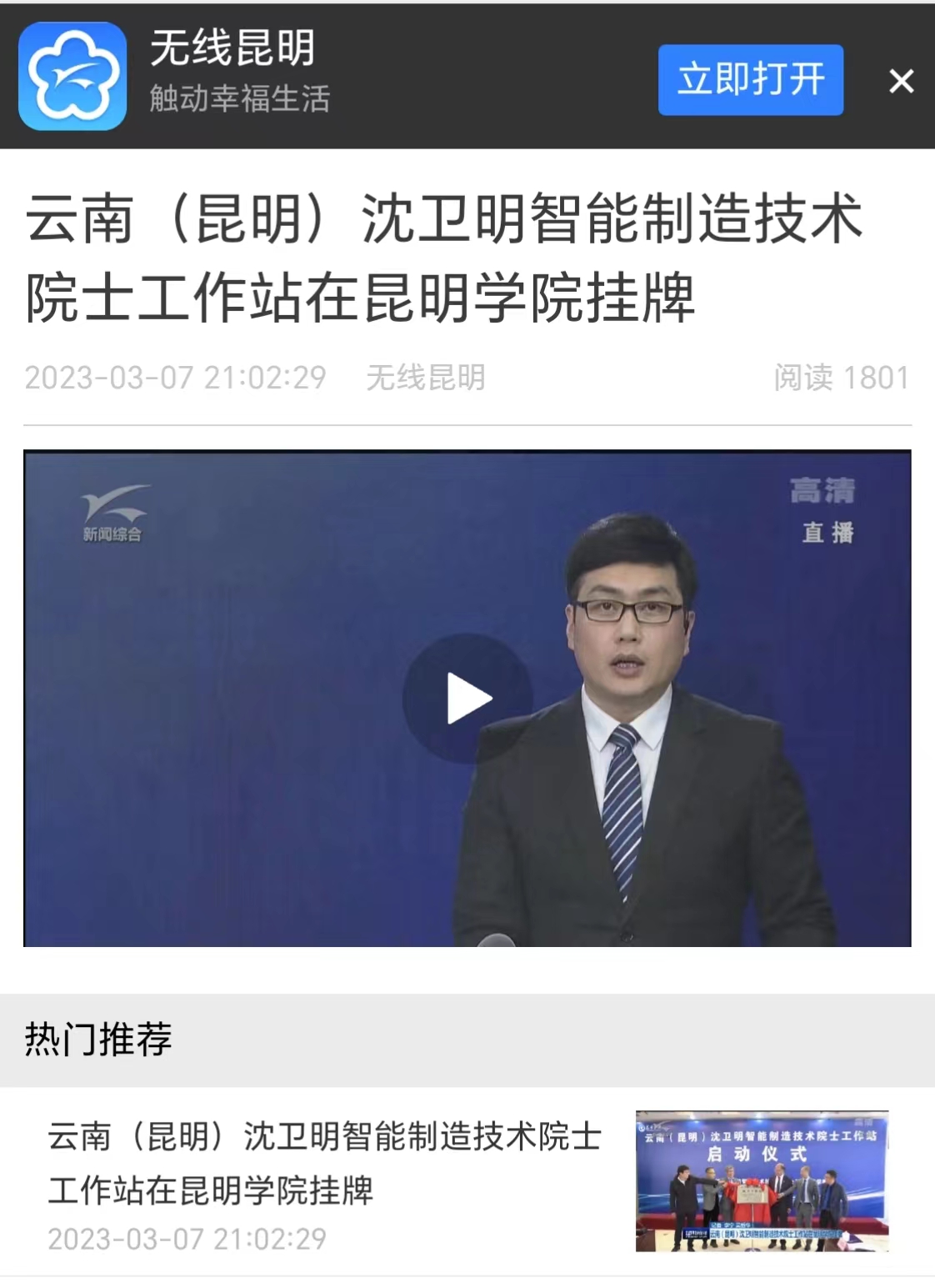 云南(昆明)沈卫明智能制造技术院士工作站在开云kaiyun官方网站挂牌