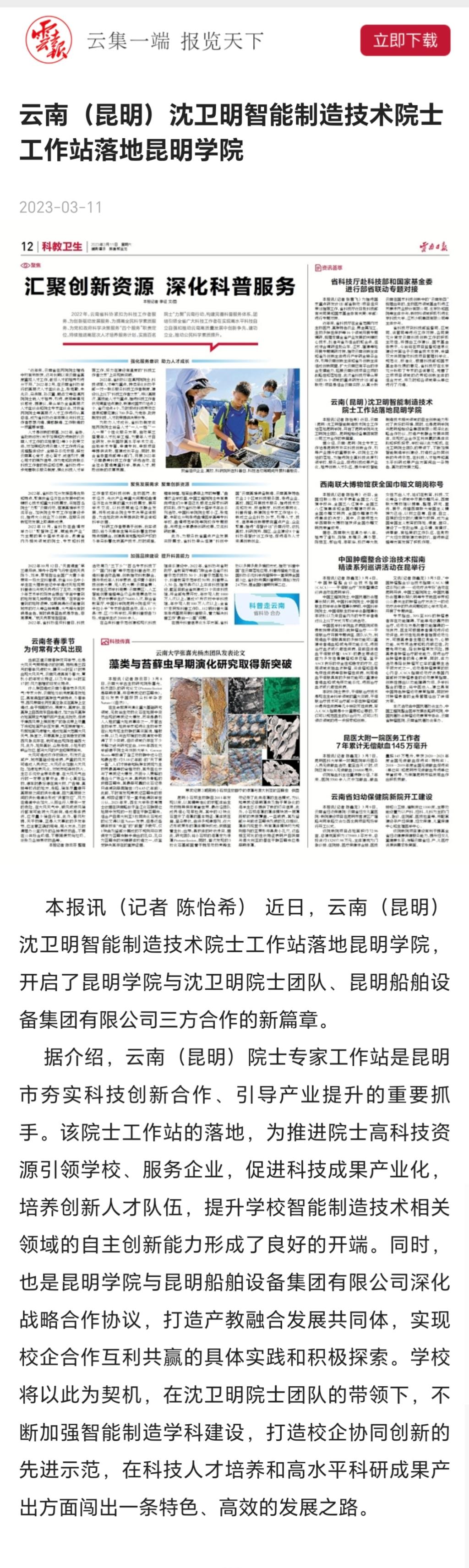 云南(昆明)沈卫明智能制造技术院士工作站落地开云kaiyun官方网站