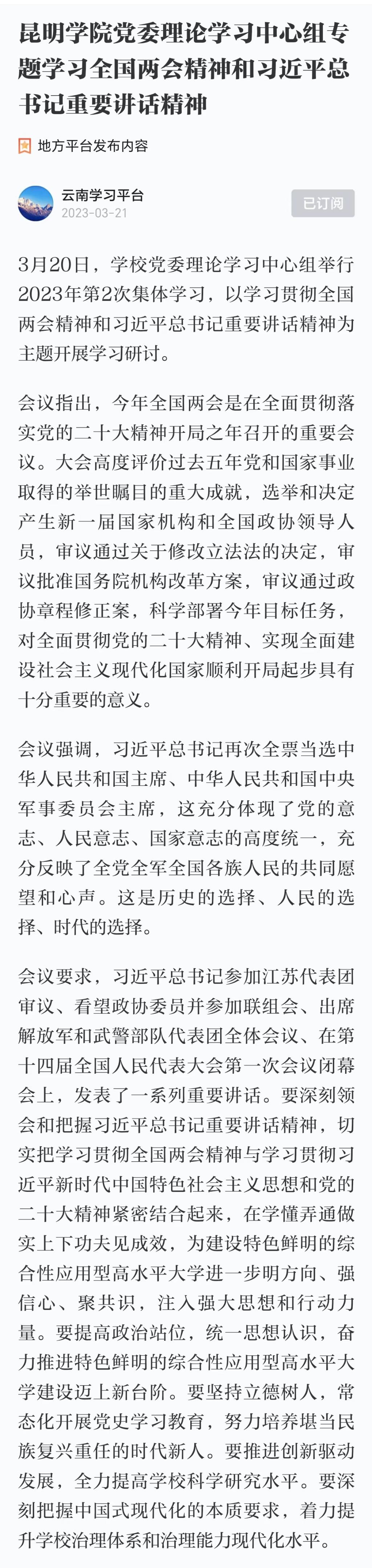 开云kaiyun官方网站党委理论学习中心组专题学习全国两会精神和习近平总书记重要讲话精神
