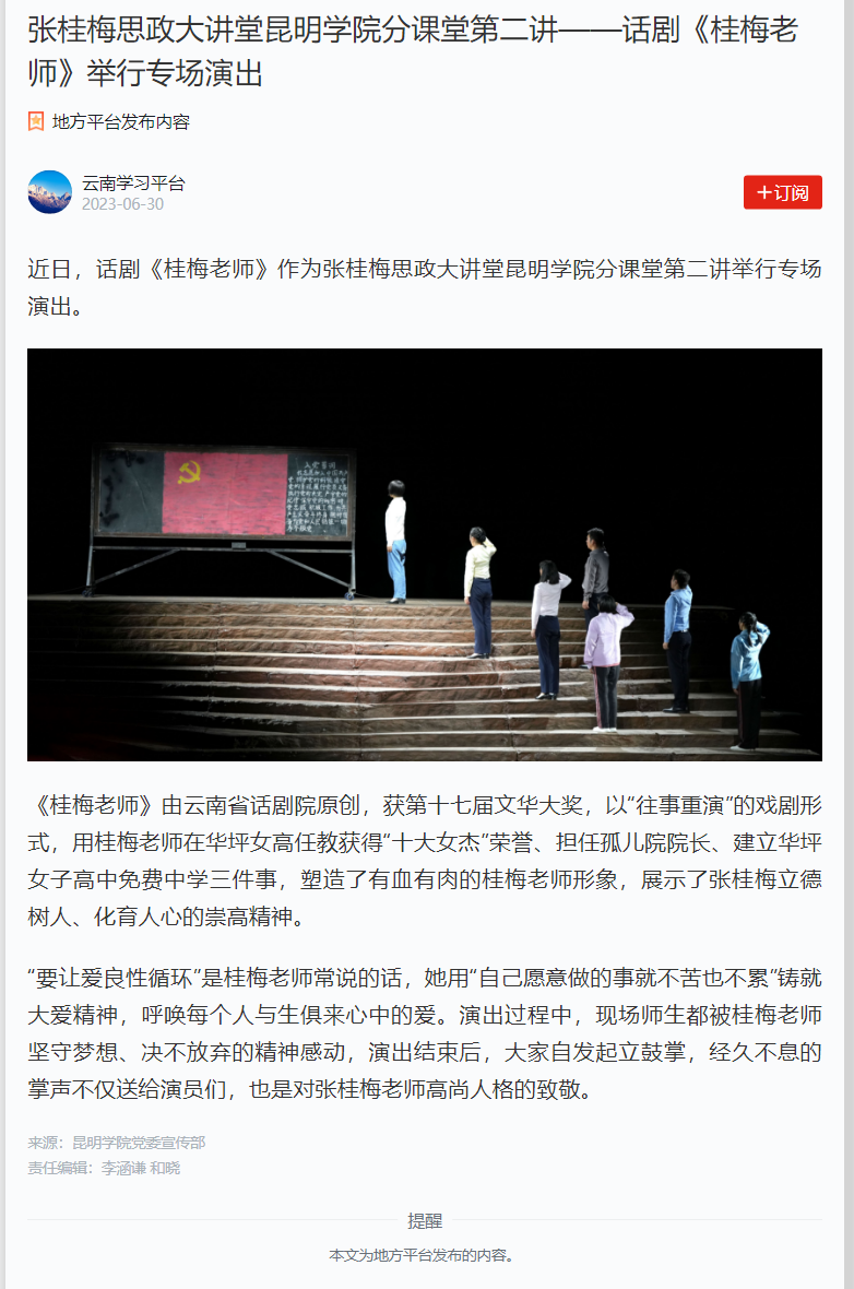 张桂梅思政大讲堂开云kaiyun官方网站分课堂第二讲-话剧《桂梅老师举行专场演出》