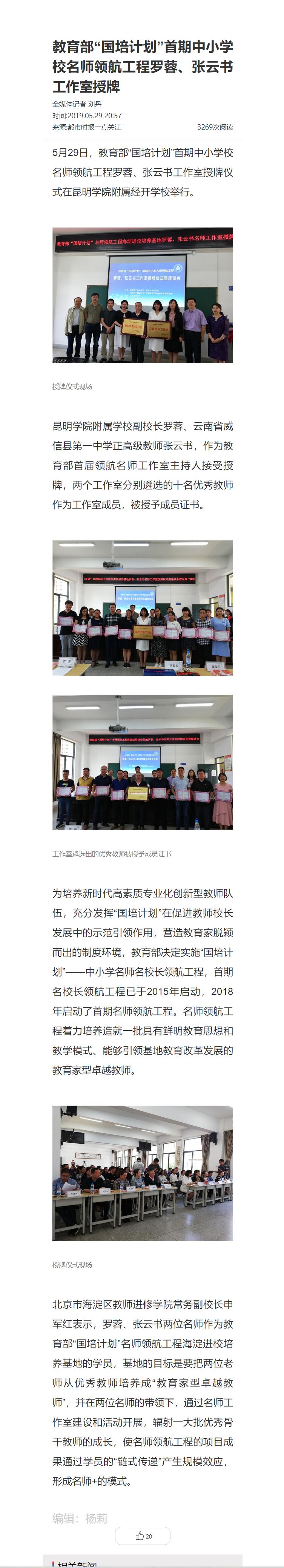 教育部“国培计划”首期中小学校名师领航工程罗蓉、张云书工作室授牌
