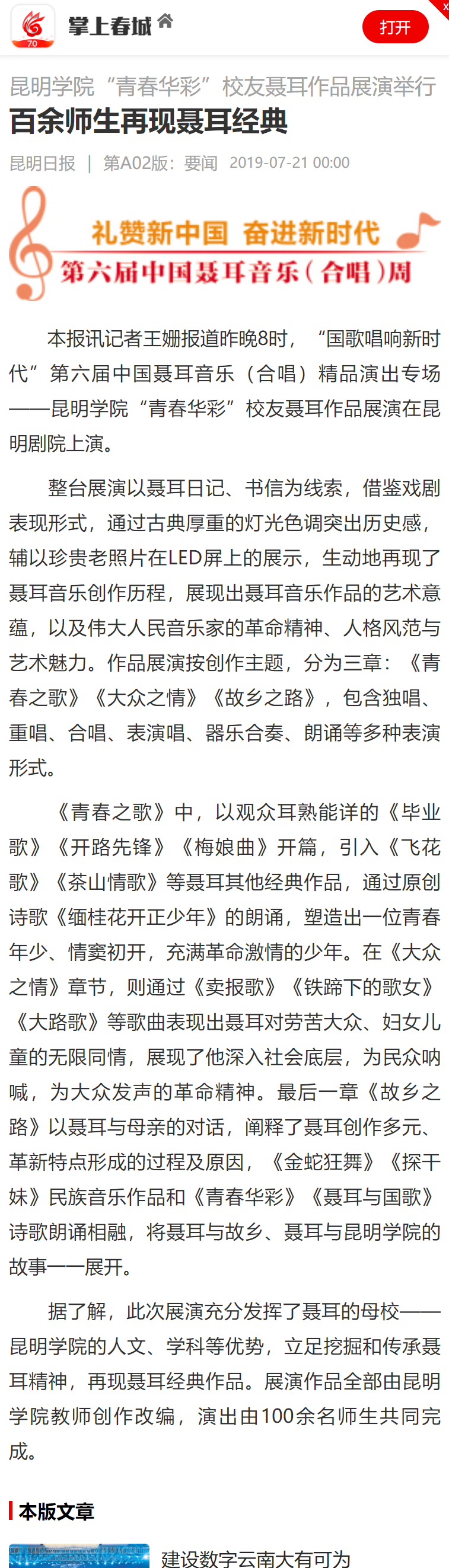 开云kaiyun官方网站“青春华彩”校友聂耳作品展演举行