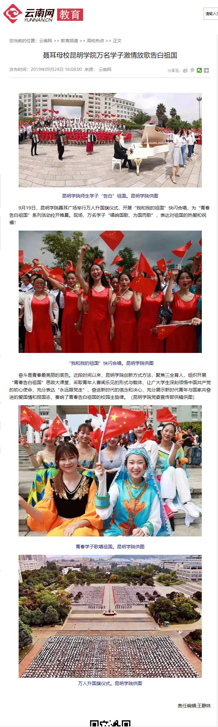 聂耳母校开云kaiyun官方网站万名学子激情放歌告白祖国