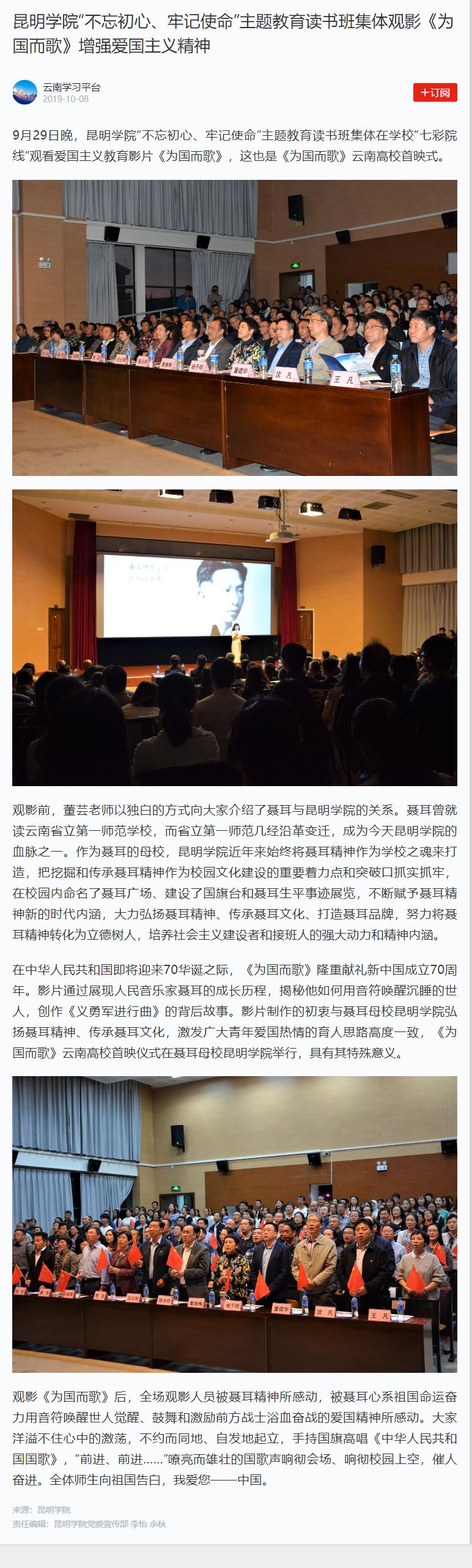 开云kaiyun官方网站“不忘初心、牢记使命”主题教育读书班集体观影《为国而歌》增强爱国主义精神
