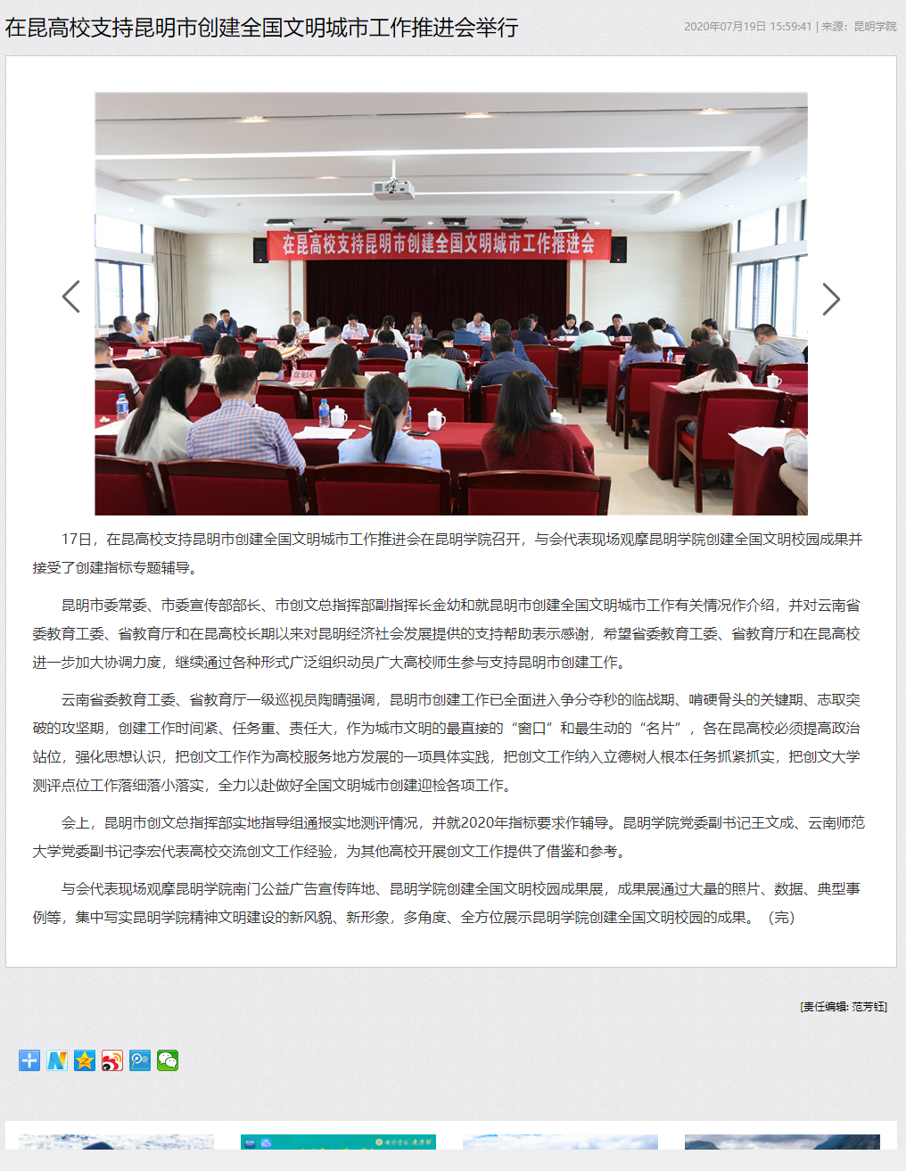 在昆高校支持昆明市创建全国文明城市工作推进会举行
