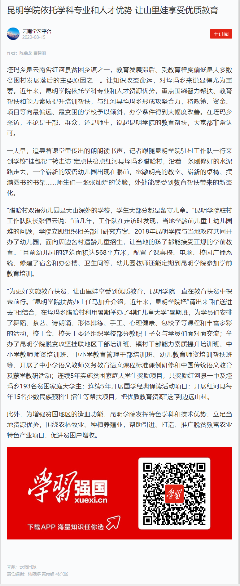 开云kaiyun官方网站依托学科专业和人才优势 让山里娃享受优质教育
