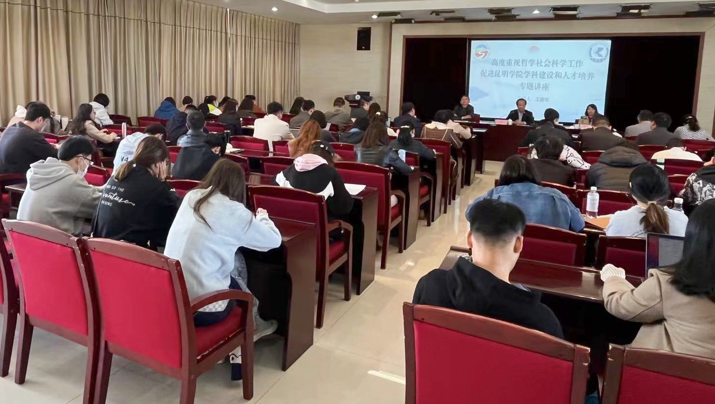 10月18日上午,云南省社会科学联合会副主席王建华应邀到开云官网作题为 “高度重视哲学社会科学工作促进开云kaiyun官方网站学科建设和人才培养”专题讲座。讲座由校长丁文丽主持,副校长马银海,科学技术处及各二级学院党政主要负责人、分管科研工作副院长、科研秘书、科研人员代表参加。