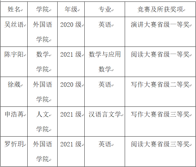 开云官网参赛学生获奖名单