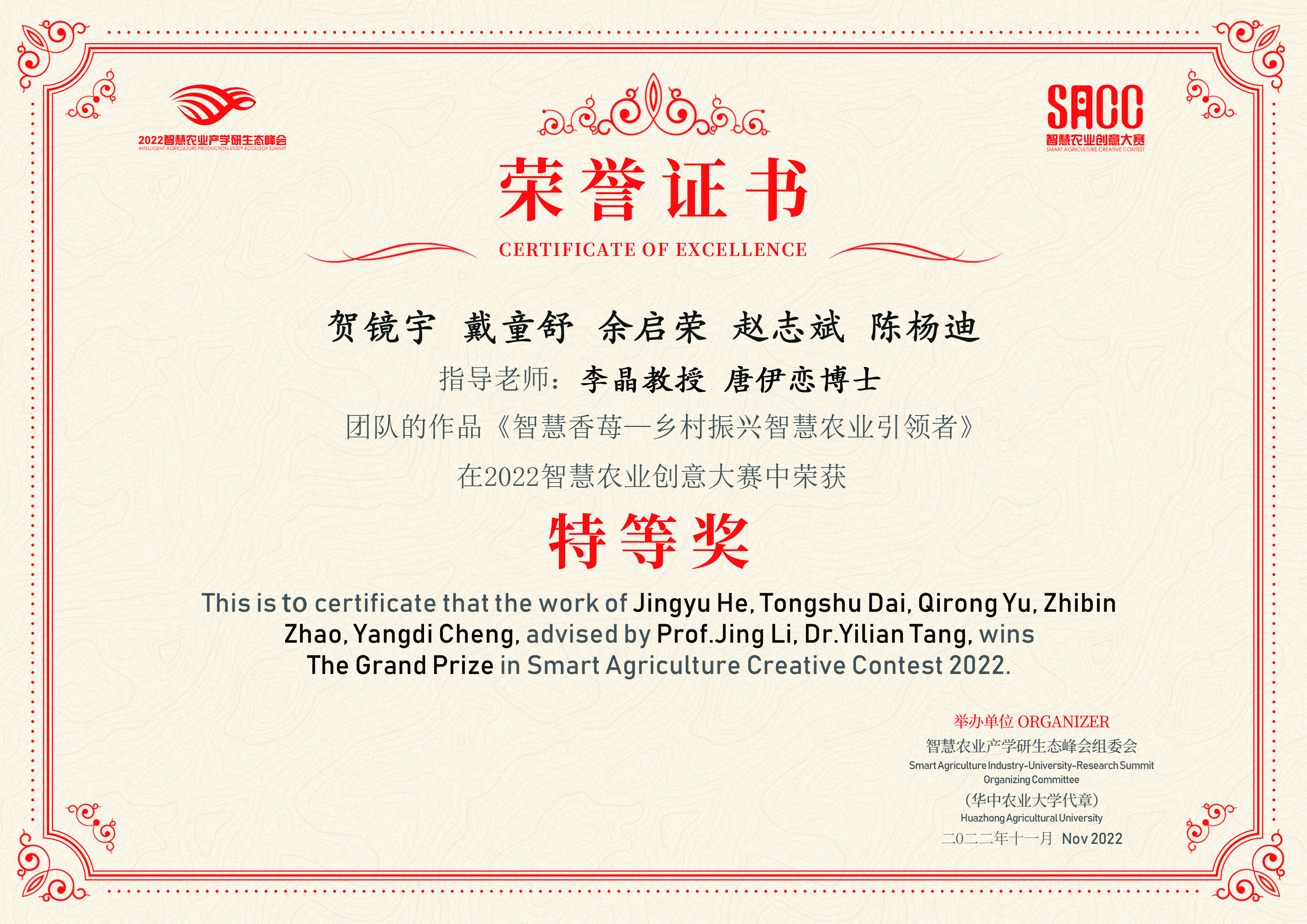 智慧香莓团队由农生学院李晶教授、机电工程学院唐伊恋博士指导;农生学院、机电工程学院、美艺学院的1位研究生与4位本科生组成。团队在前期工作基础上,系统开展了高原草莓光温电耦合与分子遗传相关研究,研发了草莓智慧种植系统、精准溯源系统、草莓植物工厂等多项创新技术与产品。本次获奖对开云官网智慧农业本科专业申报,人才培养、学科建设与科学研究具有积极意义。