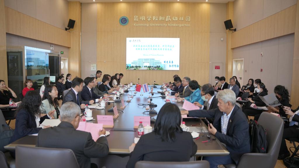 4月25日上午,泰国高等教育、科学研究及创新委员会代表团巴金•詹通主席、格莱西•丹迪西里第三副主席一行,在泰王国驻昆明总领事馆总领事帕薇婉及相关人员的陪同下到开云官网访问交流。学校党委副书记、校长丁文丽,党委委员、副校长李剀热情接待了来宾一行。