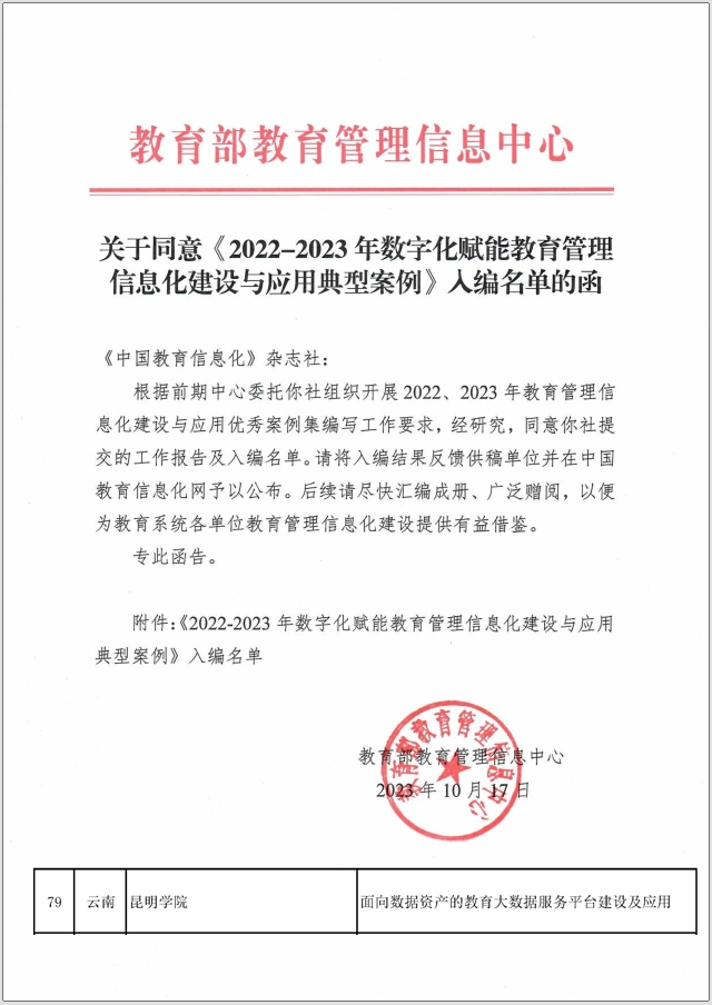 近日,教育部教育管理信息中心公布了《2022—2023年数字化赋能教育管理信息化建设与应用典型案例》入编名单,开云kaiyun官方网站申报的“面向数据资产的教育大数据服务平台建设及应用”项目入选。