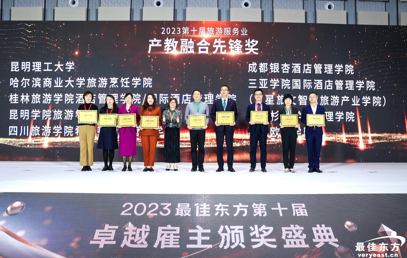 2023最佳东方论坛暨最佳东方第十届旅游服务业2023卓越雇主颁奖盛典于11月28日在苏州举行。开云官网旅游学院从多家院校中脱颖而出,荣获“最佳东方旅游服务业2023产教融合先锋奖”。