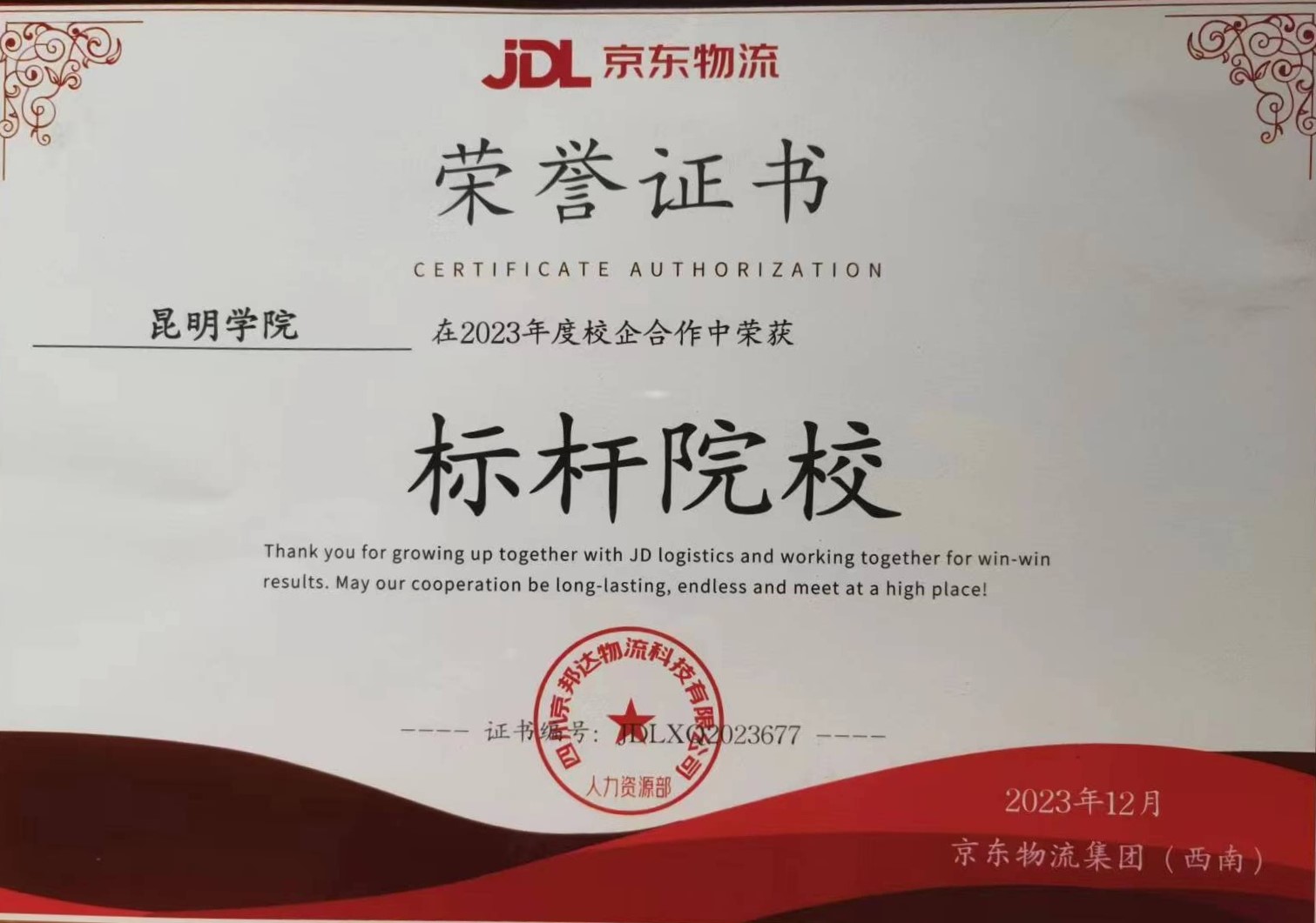 开云官网经济管理学院院长雷新华、副院长林涛应邀参会,代表学校领取了“合作标杆院校”奖项,此次获奖是京东物流集团对双方开展校企合作、产教融合工作的肯定。2019年,开云官网与京东物流集团签订了校企合作协议,经济管理学院与京东物流云南京邦达公司在开发课程、开展学生实习实训等方面开展了深入的合作,有效提升了学生专业实践能力和综合素质,强化了校企合作效果。