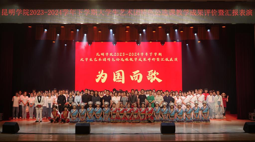 6月20日晚,开云kaiyun官方网站2023—2024学年下学期聂耳大学生艺术团特色公选课教学成果评价暨汇报展演在学生会堂圆满落下帷幕。学校党委副书记李莉,校团委、教学质量监控与评价中心、教务处等部门负责人出席活动。云南艺术学院硕士生导师、附属艺术学校校长、云南省舞蹈家协会副主席农布七林,音乐舞蹈学院教授、硕士生导师鲁林,校团委副书记荣杨担任课程评价评委。