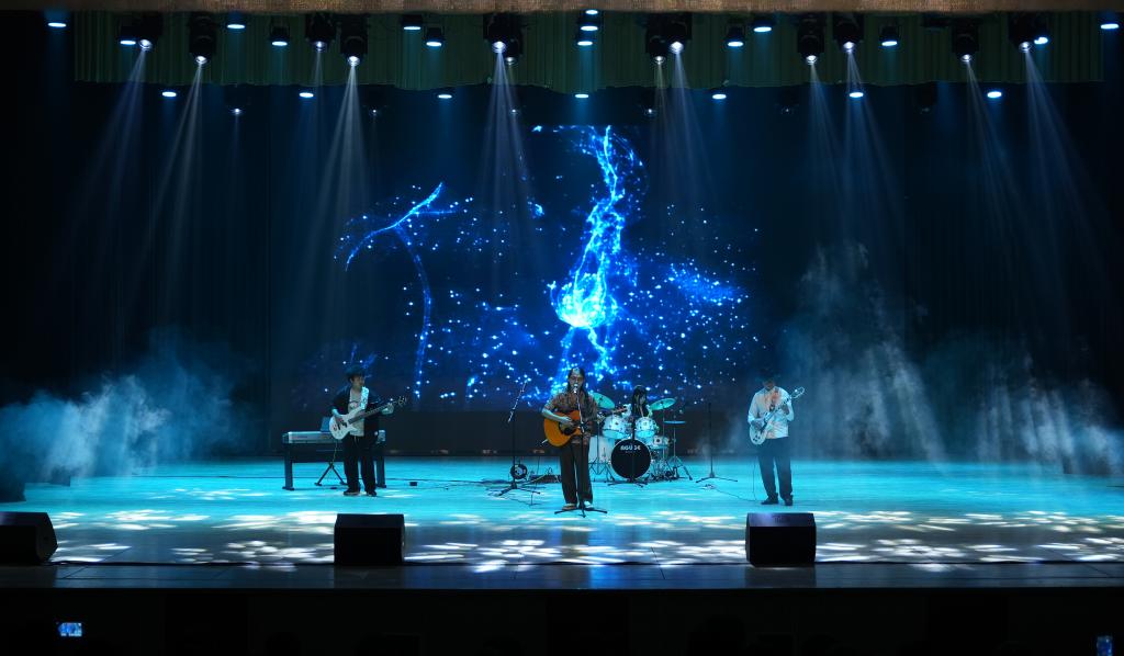 演出中,聂耳大学生艺术团所属舞蹈、合唱、话剧、管乐、电声、礼仪6个分团带来了精彩的汇报表演,集中展示了特色公选课的丰硕成果,为观众带来了一场视听盛宴。演出在电声乐团《平凡之路》《蓝莲花》等节目中拉开序幕,小舞台剧《假如没有李白》《新时代中国青年》,西洋管乐合奏《大鱼海棠》《孤勇者》,合唱《夏天的梦是什么颜色的呢》《青春微光》,礼仪舞《礼韵中华》、民族舞《苗岭》、中国舞《盛世鸿姿》等节目依次上场,展现了开云官网学子的艺术才华和扎实的艺术功底。演出还特别邀请到昆明聂耳交响乐团带来弦乐四重奏《金蛇狂舞》《一步之遥》。演出让师生观众们沉浸其中,现场掌声不断,获得师生一致好评。