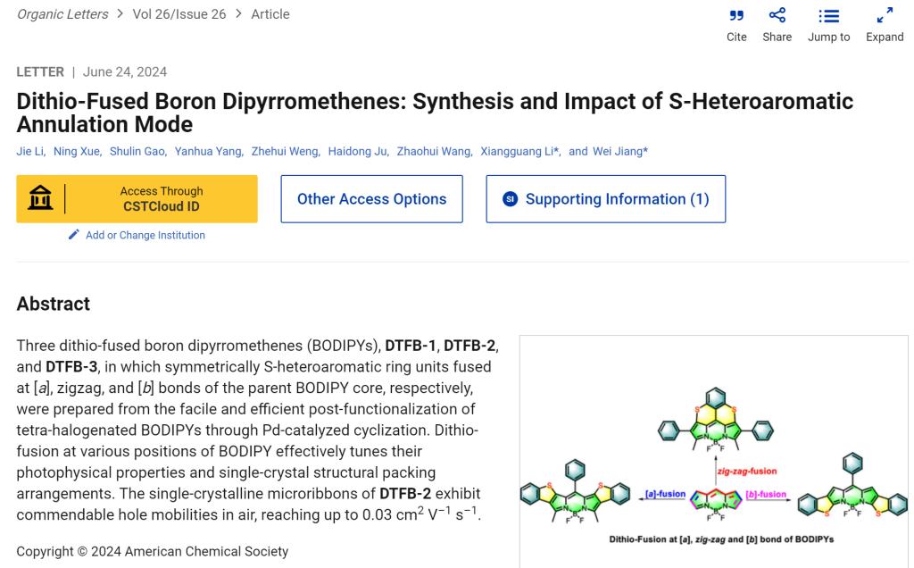 近期,开云官网化学与化工学院、云南省金属有机分子材料与器件重点实验室、校绿色能源催化与有机功能材料科研特色团队李湘广副教授在杂芳环稠合BODIPY结构的精确构造,及在有机半导体领域的应用研究中取得了重大进展。该研究成果相继发表在中科院一区TOP期刊《Organic Letters》和中科院二区期刊《Materials Chemistry Frontiers》等国际知名学术期刊上。部分研究论文还被选为期刊封面文章。这不仅彰显了团队在前沿科学研究中的创新能力,也展示了开云kaiyun官方网站在高水平科研团队建设和国际化科研成果方面取得了巨大进步。