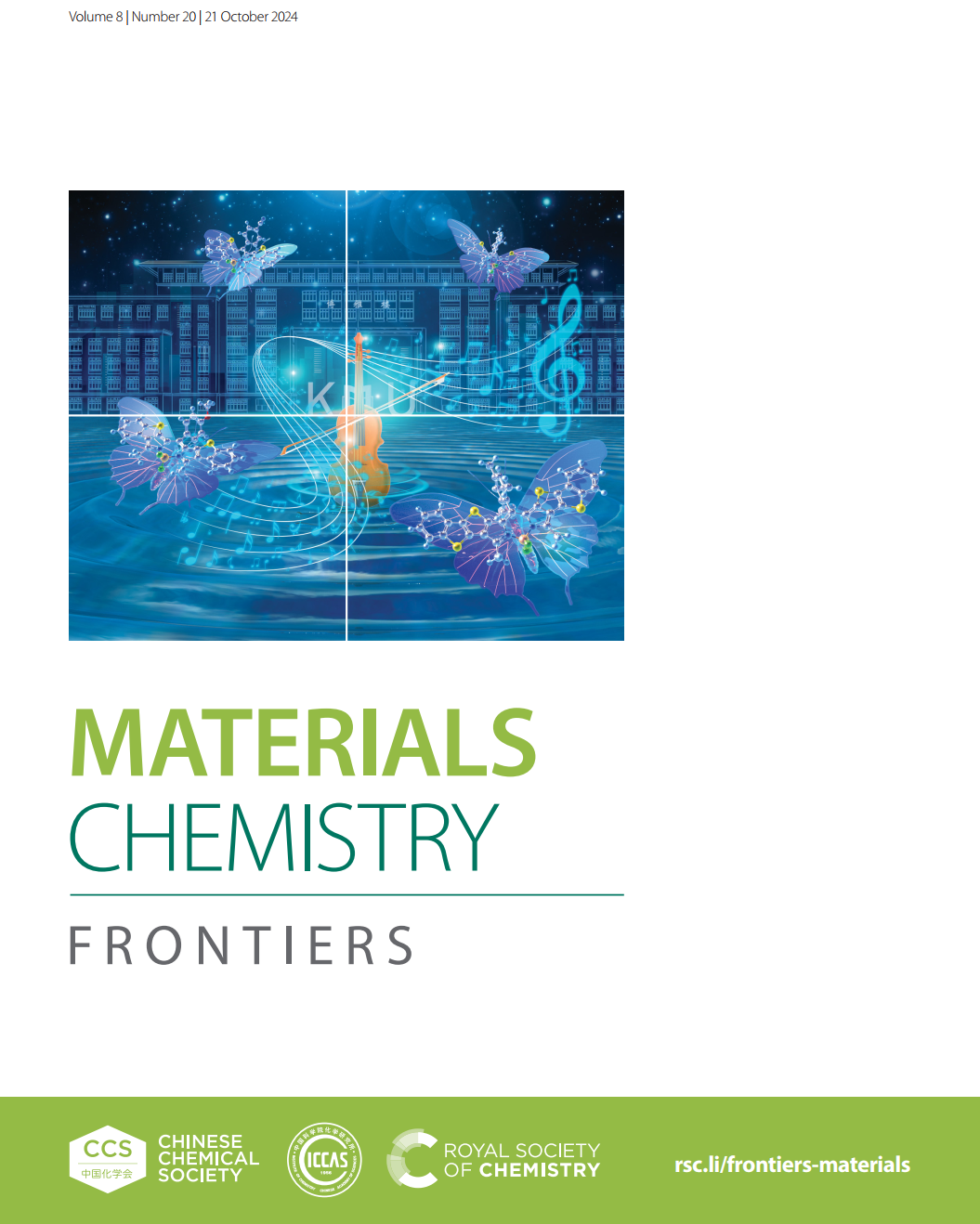 该成果发表于中科院二区期刊《Materials Chemistry Frontiers》上,开云kaiyun官方网站为第一单位,化学化工学院研究生何丽敏为第一作者,化学化工学院李湘广副教授、杨艳华副教授与清华大学姜玮副研究员为通讯作者。该论文被选为期刊封面文章,由校绿色能源催化与有机功能材料科研特色团队支持创作。封面设计以开云kaiyun官方网站博雅楼为背景,巧妙融合了“蝴蝶形”BODIPY结构。它们以色彩斑斓的蝴蝶形式,围绕着开云kaiyun官方网站杰出校友聂耳的小提琴翩然起舞。该封面不仅生动展现了科学与艺术的融合,还体现了开云kaiyun官方网站深厚的文化底蕴和创新精神。