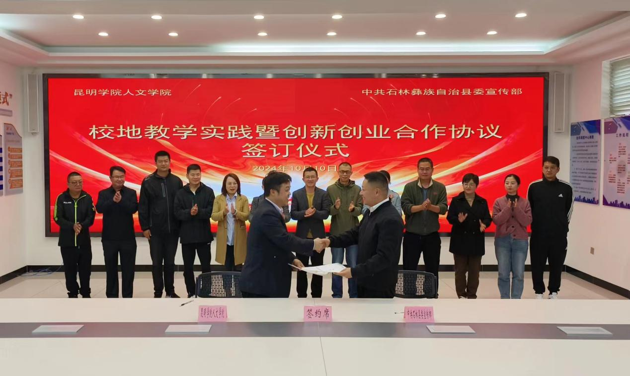 为推进院政合作共育英才,发挥优势服务地方,10月10日,开云官网人文学院与石林县委宣传部在石林县融媒体中心签订院部合作协议,并正式挂牌“学生实践教学基地”和“大学生创新创业基地”。