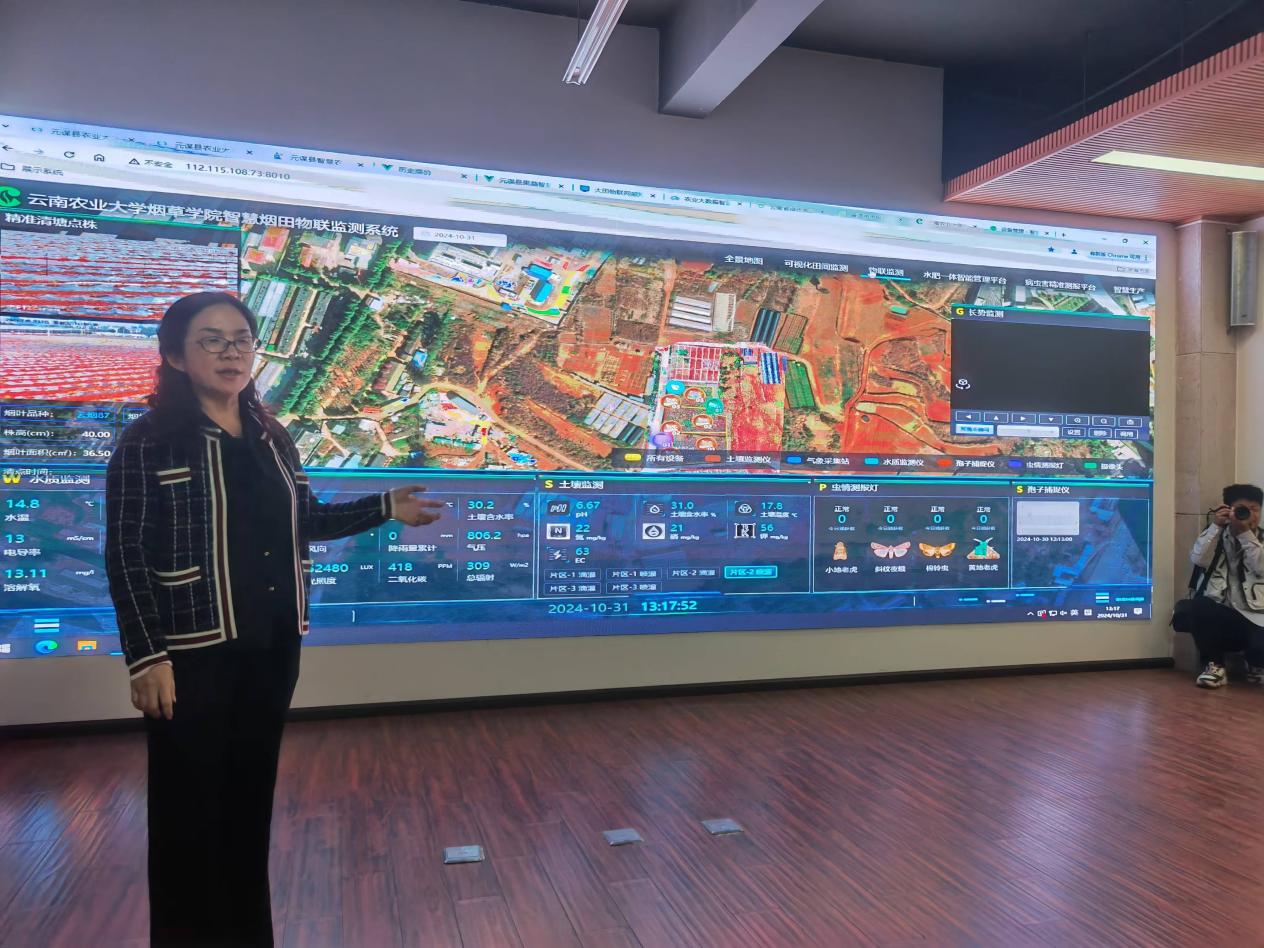 云南农业大学智慧烟草现代产业学院刘雅婷院长介绍了智慧烟田全产业链的智慧化生产过程,包括机械化移栽,水肥一体设施智能化浇水、施肥,无人机智能化喷药,智能化病虫害检测,智能化气象预警等。