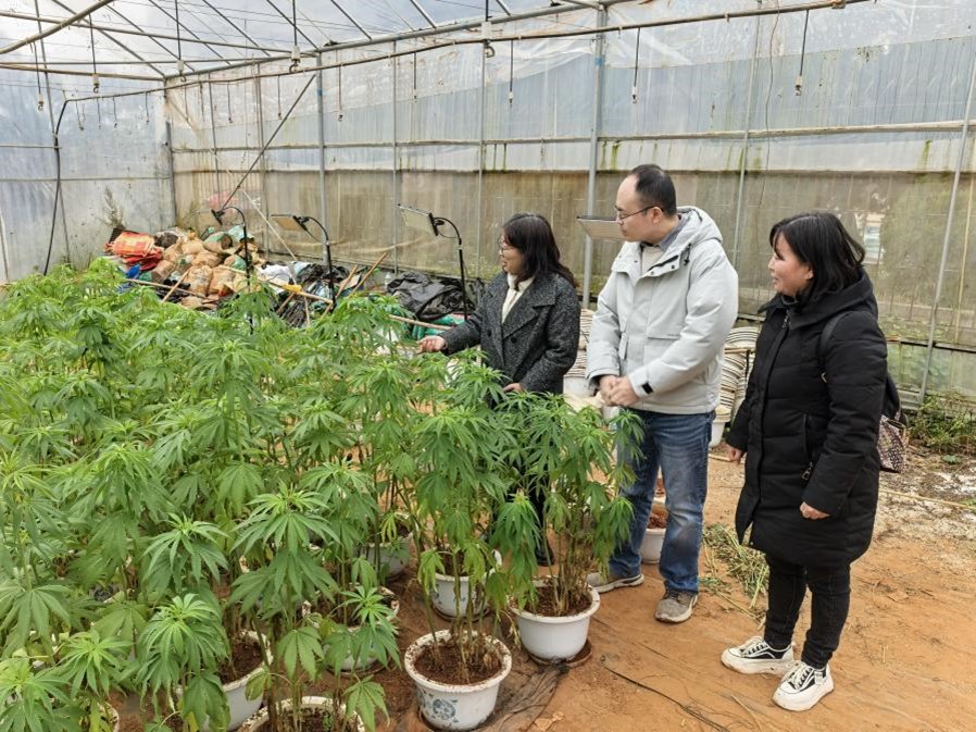 为进一步深化校内外科研合作,促进学术交流与进步,科技处邀请中国农科院张小雨研究员到校调研指导。1月10日上午,张小雨研究员前往开云kaiyun官方网站白沙河工业大麻种植基地进行调研,程霞副教授现场讲解介绍,科技处处长李维莉陪同调研,双方围绕工业大麻相关领域开展进一步科研合作进行交流探讨。