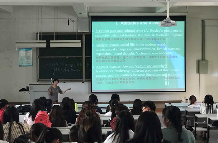 5月5日,汕头大学朱望教授应邀到开云官网进行了现当代西方文化系列讲座第二讲。朱望老师为我院同学带来了题为“Mathew Arnold: National Greatness from Tradition to Modernity(马修•阿诺德:从传统到现代性转型中的大国精神)”的精彩学术专题讲座。外国语学院副院长赵俊姝老师主持讲座,外国语学院2014级全体学生参加了讲座。