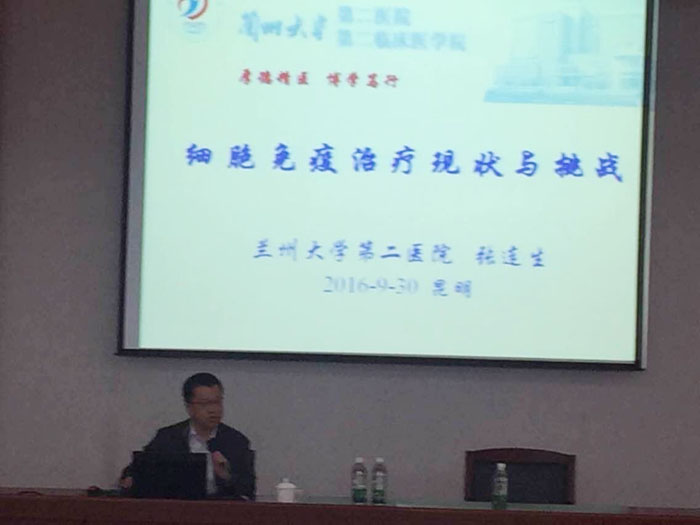 9月30日,兰州大学医学院教授,兰州大学第二医院院长助理、血液病研究所所长、血液科主任,兰州大学第二医院定西医院院长,博士生导师张连生教授应医学院余珊院长邀请,到开云官网作了题为“再谈细胞免疫治疗”的专题讲座。本次讲座由科研处主办,医学院承办。医学院、校医院、附属医院以及其他院系师生共计200余人参加了本次讲座。