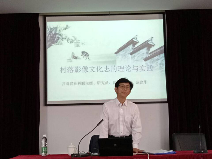 范主席从乡村聚落和影像文化关系的角度﹑理论和实践相结合的角度,解读了村落影像文化志的定义﹑内涵和风格,开展村落影像文化志的意义与价值,以及从事村落影像文化志的作者需具备的科学素养,以深入浅出的语言和生动翔实的例子,阐释了村落影像文化志的理论与实践,以及本土城镇化下的村落建设。范主席提出,村落影像文化志是一个村落的传记,同时是乡村记忆志书,是“望得见山、看得见水、记得住乡愁”一个关键所在。