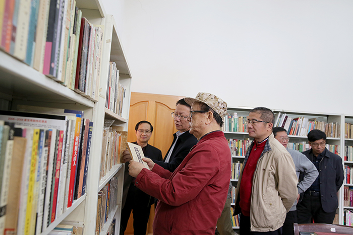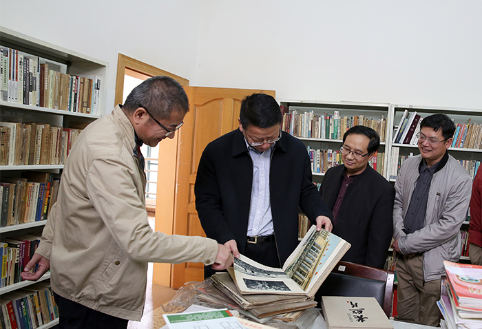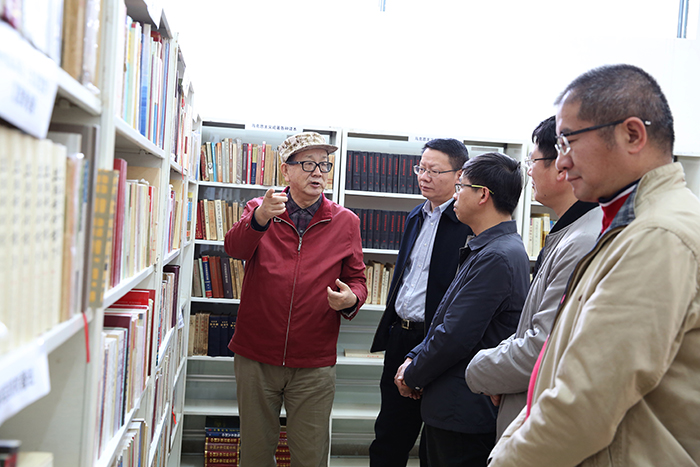 座谈交流后,陈世波书记、张祖武副书记陪同黄宏将军深入图书馆查看“马克思主义中国化足迹”专题展览资料整理情况。黄宏将军对2241册早期马克思主义中国化原著和1382册马克思主义中国化期刊如数家珍,一一查阅书目,对分类和整理提出指导意见。